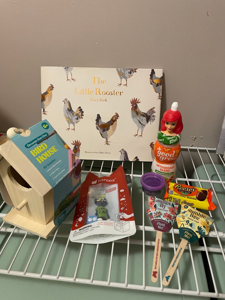 - Not pictured: I found a little vintage Maisy figurine on Mercari that I plan to add to her Easter basket when it arrives.